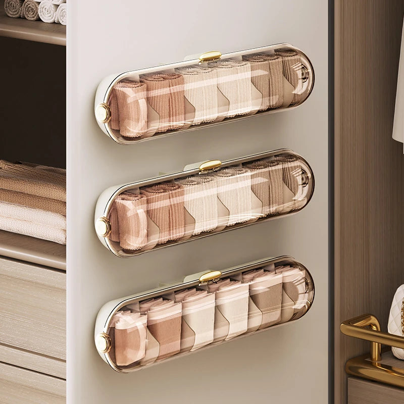 Its covered design helps protect contents from dust while maintaining a clean, modern aesthetic that fits seamlessly into drawers, cabinets, or mounted surfaces.